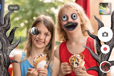 Ужас Эта программа позволяет добавлять AR-эффекты темы "Ужас" на ваши фотографии и видео, при использовании приложения "AR-эффект" на устройствах Xperia. Программа обладает технологией распознавания лиц, что позволит использовать прикольные объекты в режиме реального времени во время съемки. Вы можете перетаскивать анимации по кадру и изменять действия трехмерных объектов, просто прикасаясь к ним.