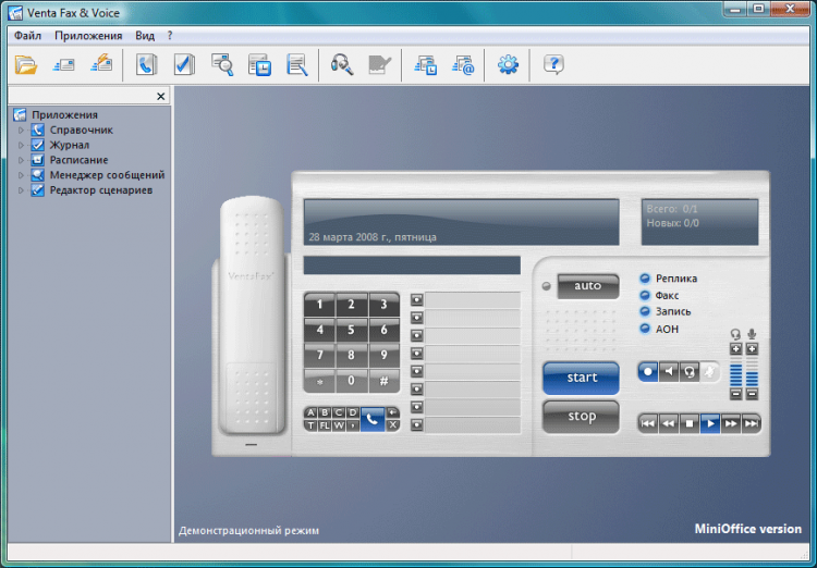 VentaFax - это программа для приема и отправки черно-белых и цветных факсов, а голосовые версии дополнительно обеспечивают работу с голосовыми функциями модемов (программный автоответчик, АОН, рассылка голосовых сообщений, запись разговора).