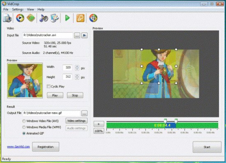 VidCrop - это редактор видео файлов, позволяющий удалят из видео ненужные фрагменты и масштабировать картинку. Он прост в использовании и имеет функцию предварительного просмотра редактируемого видео. Временная шкала позволит определить начало и конец видео с точностью до секунды. Поддерживаются практически все распространенные видео форматы.