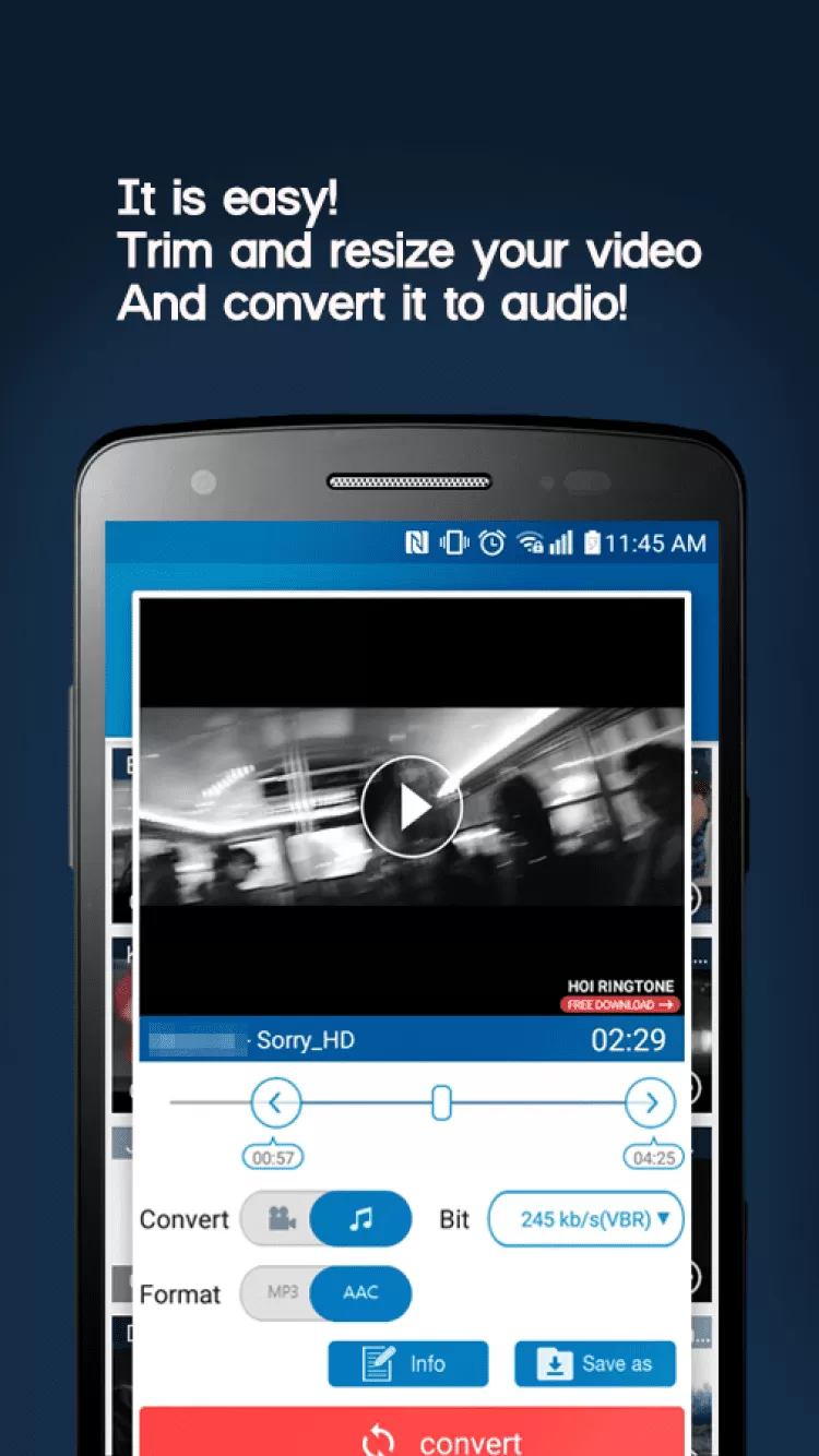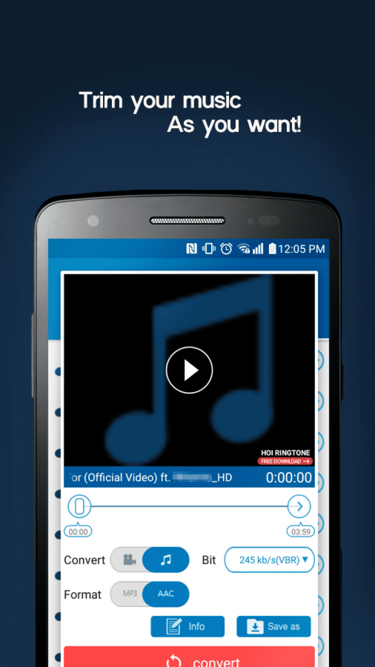 Очень быстрый аудио конвертер для мобильных устройств на Android. Программа также позволяет обрезать композиции, изменять их размер и создавать из них рингтоны.