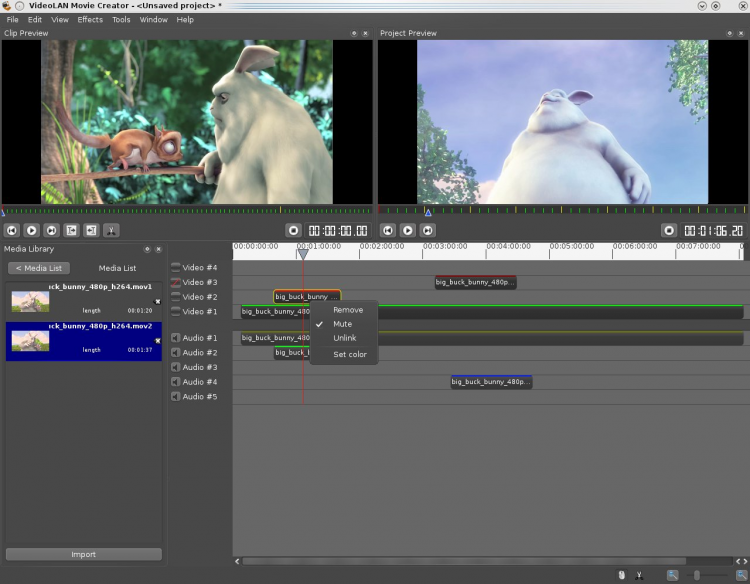 VideoLAN Movie Creator - нелинейный свободный редактор для создания видео. Поддерживает работу и экспорт в большинство популярных форматов. Полученные видео записи вы можете экспортировать напрямую на сайт YouTube.
