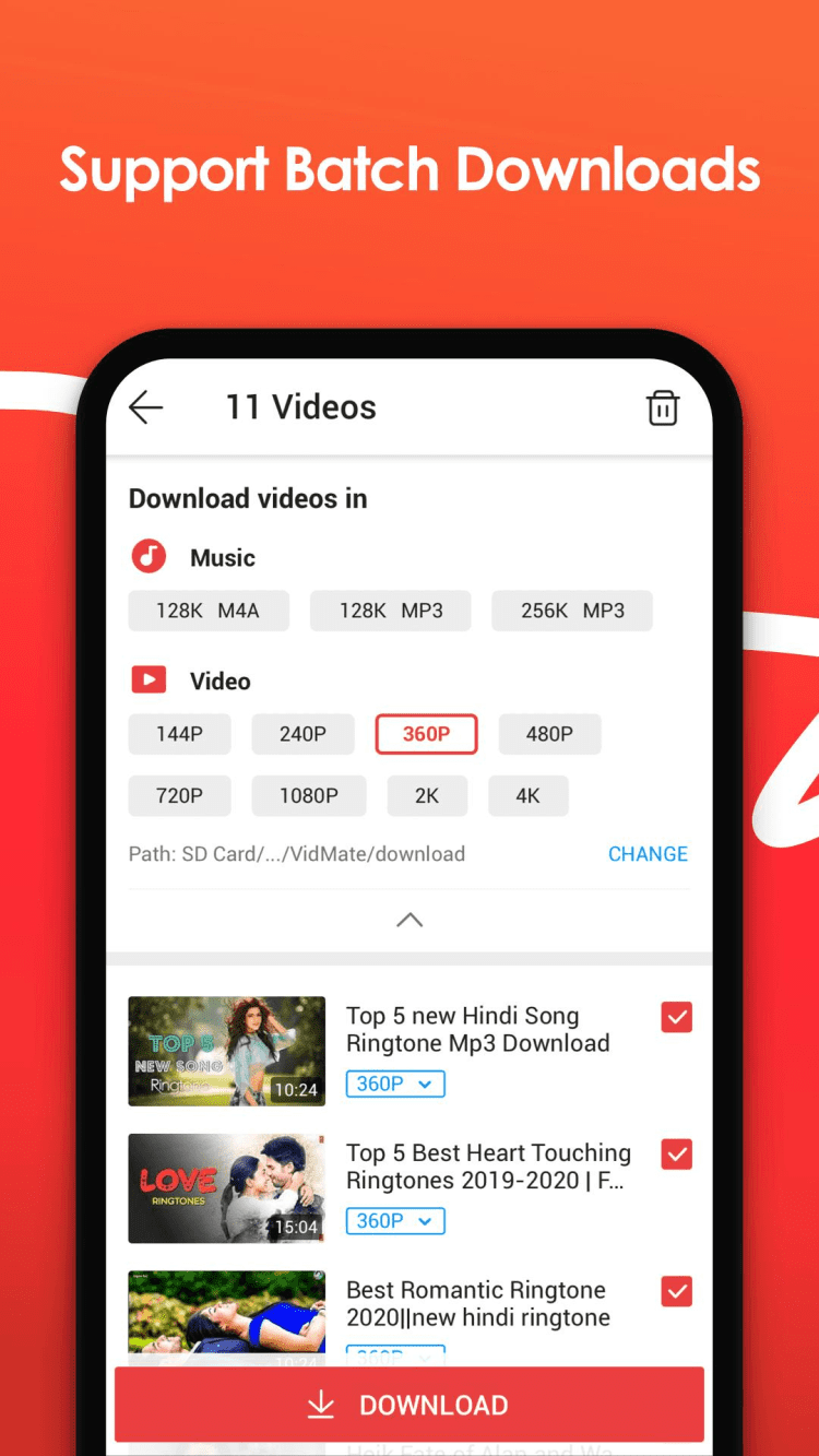 VidMate это небольшое приложение, предназначенное для скачивания видео в высоком качестве с более, чем 1000 различных сайтов и приложений.
