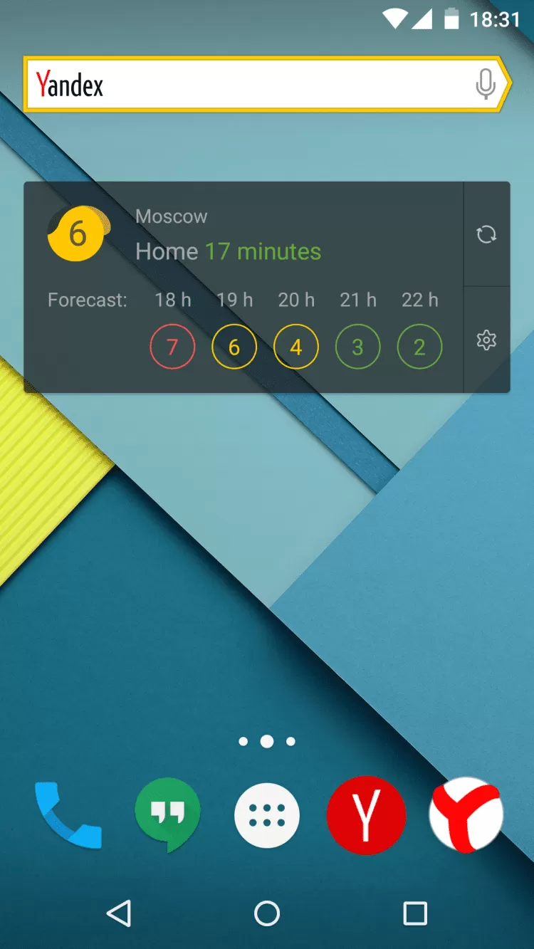 Виджет Яндекс.Пробок показывает общую загруженность дорог и позволяет следить за актуальной дорожной ситуацией в более чем шестидесяти городах России, Украины, Казахстана и Беларуси. Из виджета можно быстро перейти в Яндекс.Карты.