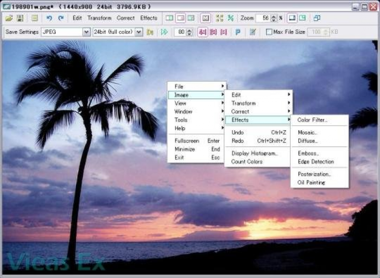 Vieas Ex Portable - это простой и быстрый просмотрщик изображений. Обеспечивает высокую скорость работы даже при открытии больших изображений, имеет минималистичный пользовательский интерфейс и ряд инструментов для простого редактирования изображений.