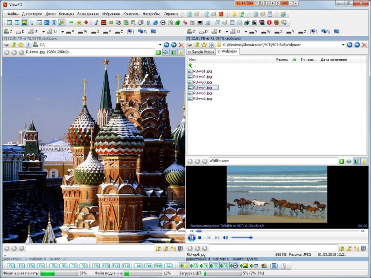 ViewFD - это менеджер видео и аудио проигрывателей (DirectShow, MCI), работающих со своими списками (M3U, PLS). Быстрый просмотр в панелях просмотра и слайд-шоу для графических файлов. Настройка изображений, в том числе с использованием цветовых и геометрических эффектов, настройка освещенности, приближающая обычные цифровые фотографии к HDR фотографиям. Изменение размеров группы изображений, создание HTML альбомов и AVI файлов. Настройка субтитров формата SRT. Просмотр и редактирование таблиц баз данных форматов TXT, DBF, DB, SQL (BDE, ADO).