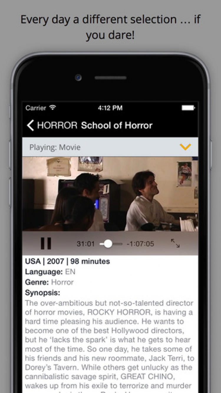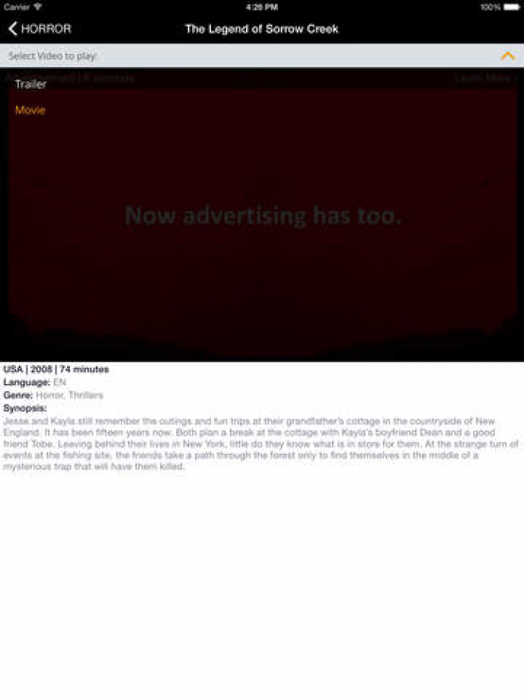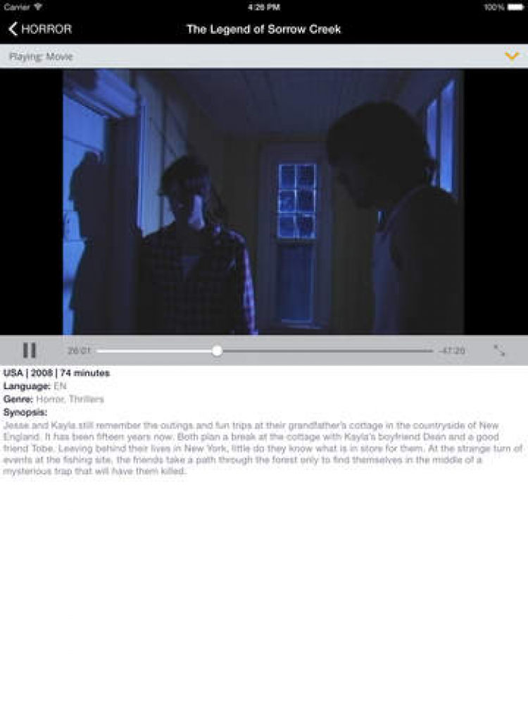 Viewster Horror – Free Movies Это приложение позволит вам бесплатно смотреть фильмы ужасов на своем iOS устройстве. Программа Viewster Horror содержит большую коллекцию фильмов ужасов, позволяет смотреть полные версии фильмов без регистрации или оформления подписки, а так же позволяет смотреть фильмы через AirPlay. Количество фильмов в приложении постоянно растет.