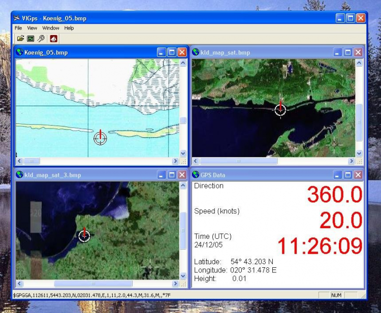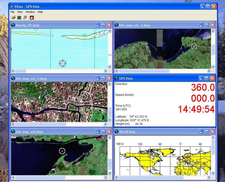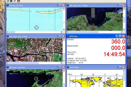 - Открытие пользовательских карт, данных GPS и мировой карты в соседних окнах.