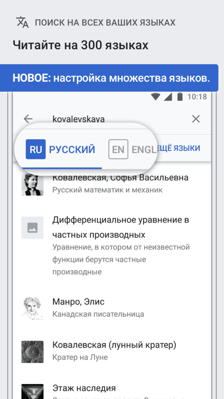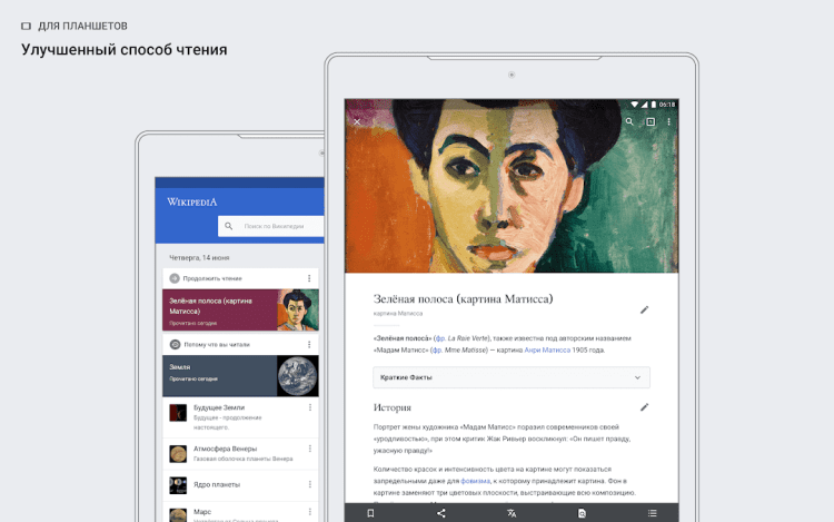 Благодаря приложению Wikipedia , вы получите не только полный и мгновенный доступ ко всей базе существующих статей, но и создавать новые. Если вы обнаружите неточности или неверную информацию, благодаря возможности редактирования статей, ошибки можно исправить. Делитесь своими знаниями с миром и просматривайте новые статьи, созданные другими пользователями Википедии, ежедневно. Найти нужную или просто интересную статью помогут тематические изображения и краткие описания статей, ознакомиться с которыми можно возле их заголовка.