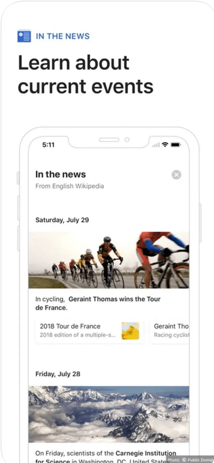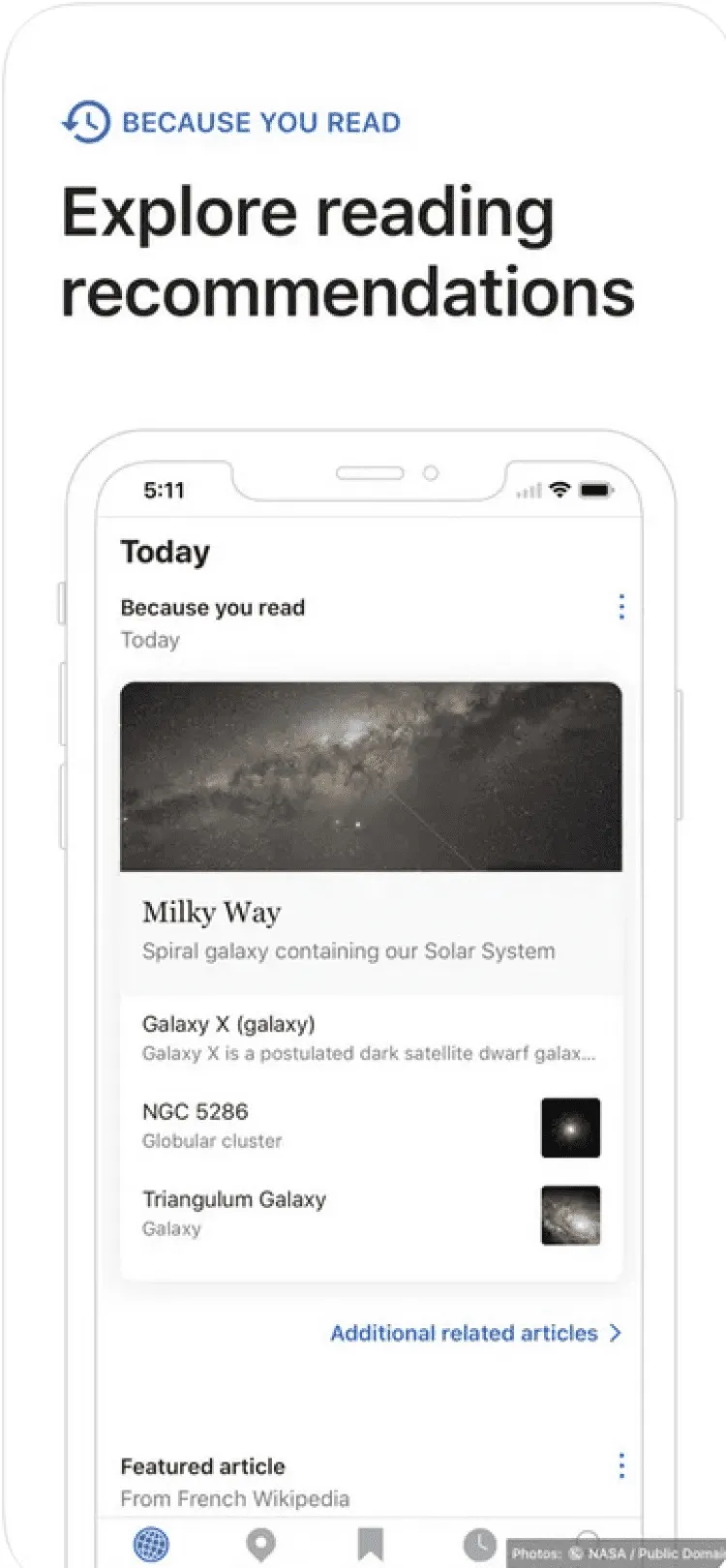 В конце каждой статьи, Wikipedia Mobile предоставит вам ссылки на другие статьи, связанные с прочитанной. Также, все статьи дополнены высококачественными изображениями с полноценным описанием.