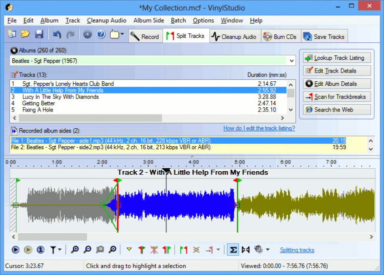 VinylStudio - это мощная программа, которая позволяет перенести музыкальные альбомы с виниловых пластинок и пленочных кассет в цифровые форматы. Так же умеет записывать музыку на CD/DVD диски.