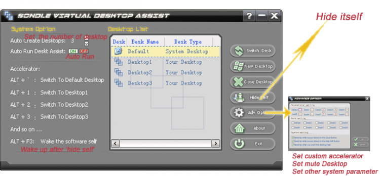 Virtual Desktop Assist - это программа, позволяющая создавать и работать с несколькими виртуальными рабочими столами.