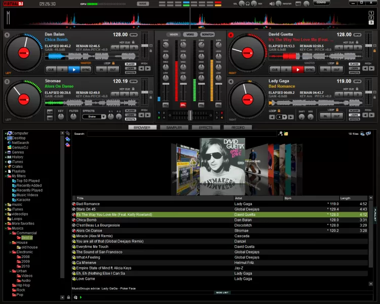 Несмотря на сложный интерфейс, программа проста в использовании и подходит для новичков. Чтобы начать микширование треков, достаточно просто открыть свою медиатеку с сэмплами, и перетащить нужные сэмплы на деки.