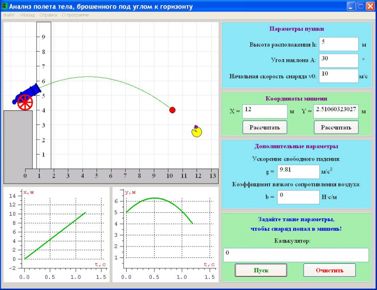 - Построение графиков по результатам эксперимента (всплытие пузырька).