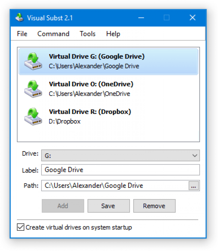 Visual Subst - полезная программа, которая позволяет создать виртуальные диски из часто используемых локальных или сетевых папок.