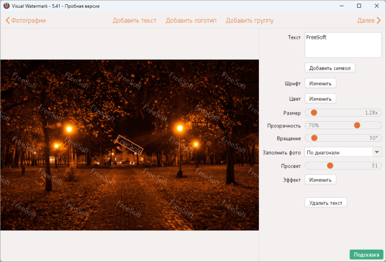 Visual Watermark - это гибкая и простая в использовании программа для наложения водяного знака на фотографии и изображения. С ее помощью можно за несколько простых шагов наложить текстовый или графический водяной знак. Visual Watermark работает со всеми популярными форматами и поддерживает пакетный режим обработки.