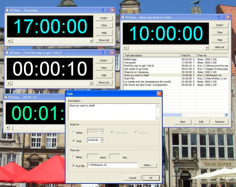 VITimer Программа-таймер, которая позволяет запускать программы и открывать файлы при наступлении заданного времени.