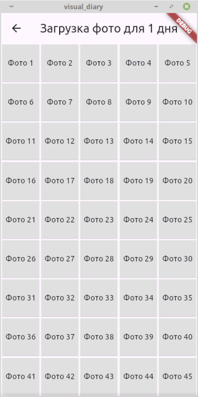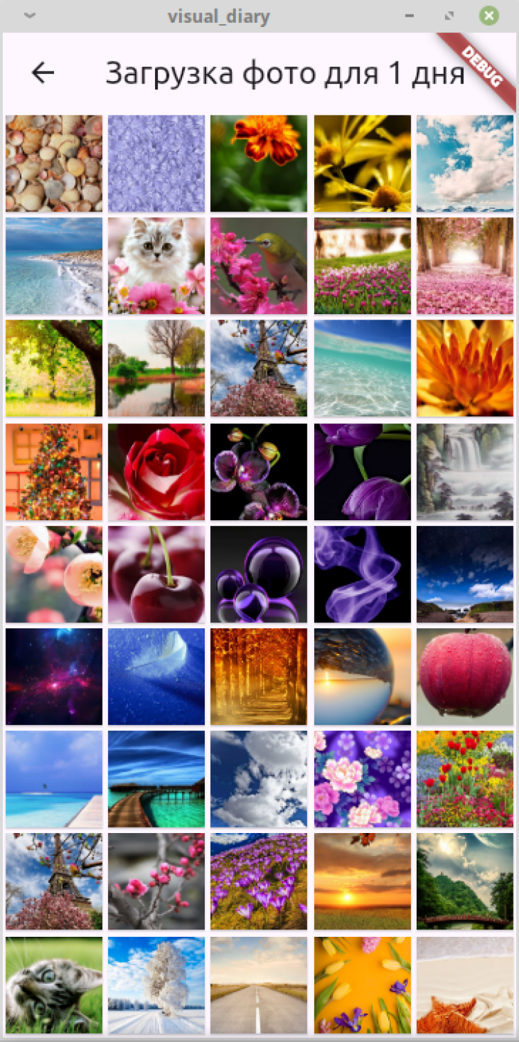 При нажатии на конкретную дату открывается экран для загрузки фото. На главной странице в конкретной дате отображается последний из загруженных снимков. Есть удаление фотографий. Также снимок можно открыть в полноэкранном режиме.
