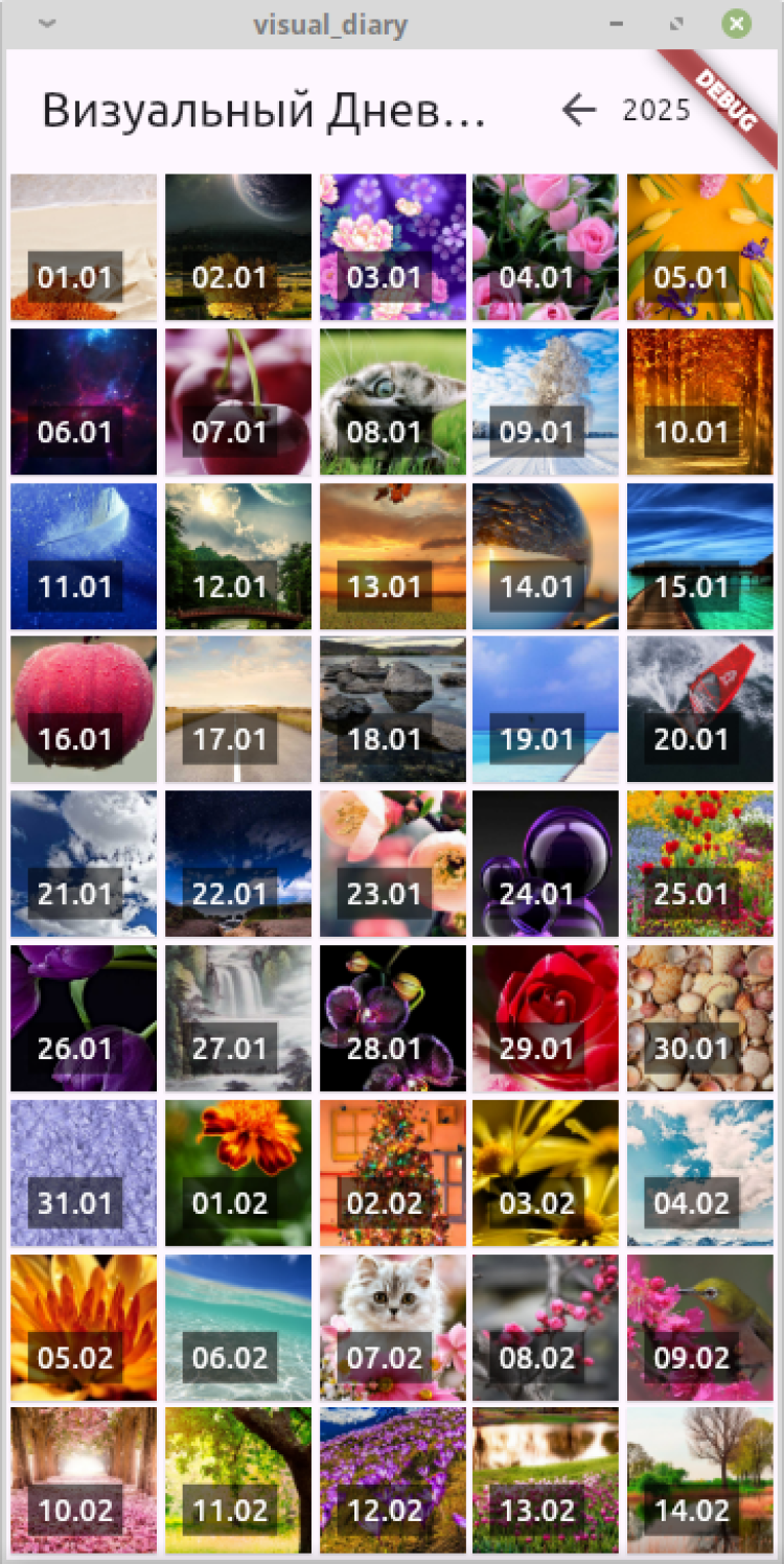 Визуальный дневник - приложение для сохранения самых ярких событий в течении года. Из сделанных за сутки снимков выбирается самое лучшее фото, с которым можно ассоциировать день, и загружается в приложение.