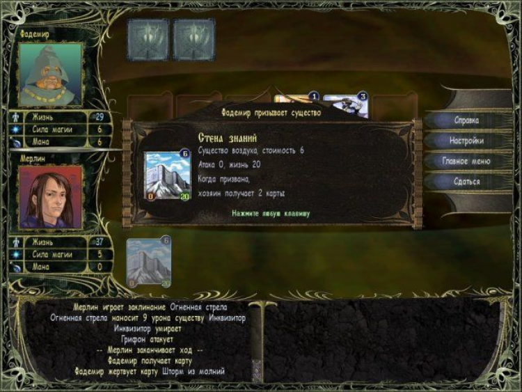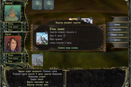 Вы можете сразиться не только с компьютером, но и с друзьями, делая ходы по очереди, а также сыграть по локальной сети и даже через Интернет. В онлайновых турнирах участвуют лиги чародеев, состоящие из магов примерно одного уровня. Игра ведется колодой, которую нужно составить самостоятельно. За каждого побежденного на турнире противника вы получите в награду новую карту и немного ментальной силы. Ну а когда вам удастся одолеть всех оппонентов на турнире, вы сможете занять достойное место в более престижной лиге.
