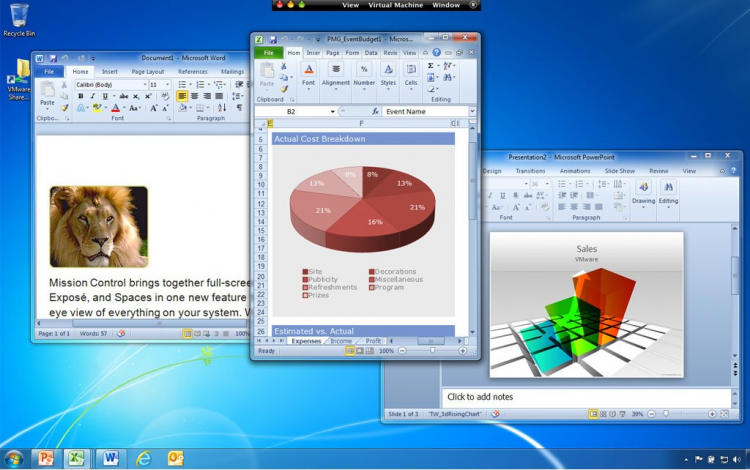 VMware Fusion предлагает уникальные и удобные способы запуска программ Windows на Mac. Выполнение программ Windows так же, как приложений Mac, с полной интеграцией копирования и вставки, перетаскивания, сетевых возможностей и печати без дополнительной настройки.