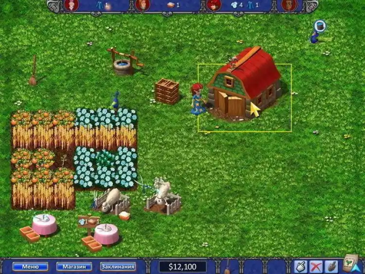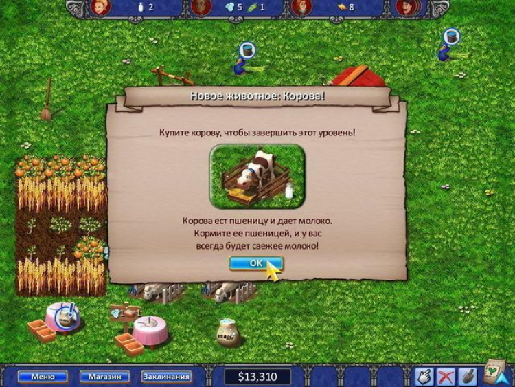 Заведете домашних животных: овец, коров, павлинов и кур. Они будут нести яйца, давать вам шерсть, молоко и красивые перья. Все это можно продавать заказчикам их будет несколько на каждом уровне игры. Чтобы перейти на следующий уровень, нужно поставить заказчикам всю необходимую продукцию. Вы наладите домашнее производство: купите вязальный станок (а лучше несколько), чтобы вязать свитера из овечьей шерсти они всегда пользуются спросом. Построите домашнюю пекарню и сможете стряпать в ней пироги с клубникой. Установите мороженицу и волшебный котел, чтобы делать с его помощью полезные магические предметы.