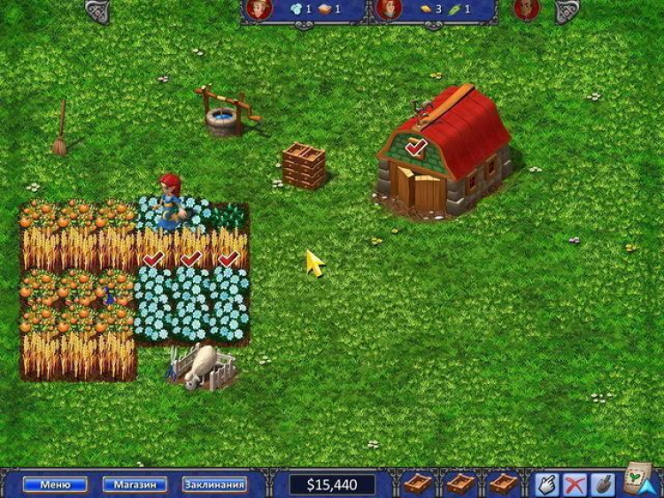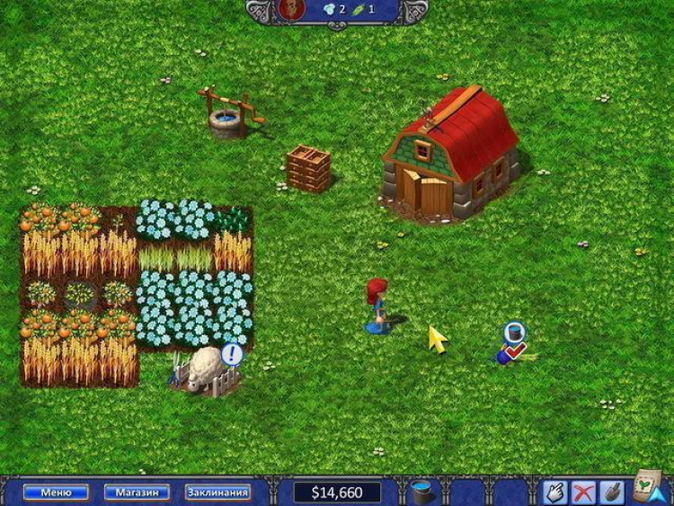 Для начала вам нужно будет купить в магазине семена и заколдовать лопату чтобы она самостоятельно вскапывала грядки. Ферма располагается неподалеку от большого города. Там с удовольствием купят все, что вырастет у вас на огороде! Присматривайте за вашими растениями. Их нужно поливать и защищать от грызунов. Примерно к третьей главе игры в вашем хозяйстве появится кот-беспризорник, который возьмет мышей на себя. Блюдечко молока время от времени и он будет исправно нести свою службу! Вы сможете выращивать цветы, пшеницу, кукурузу, арбузы, клубнику и даже апельсины.