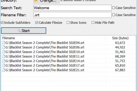 С этой программы вы сможете быстро найти все файлы, в которых есть определенный текст. Введите запрос, укажите часть имени/расширение файлов, в которых хотите выполнить поиск, и нажмите "Start". Поиск может быть чувствительным к регистру символов. Дополнительно можно выполнить поиск во вложенных папках.