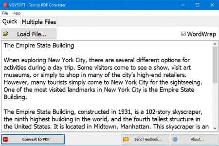 Vovsoft Text to PDF Converter — это бесплатная утилита, которая может конвертировать один или несколько текстовых файлов в PDF.