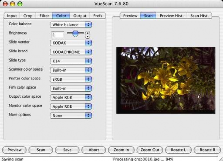 С помощью программы VueScan, отсканированные документы, записки, фотографии и многое другое, могут быть сохранены в форматах JPEG, TIFF и PDF. Перед сохранением, на файлах изображений могут быть восстановлены цвета, резкость, изменен размер, а так же цветовой баланс. Помимо этого, VueScan обладает мощным инструментом для распознавания текстов, работающим на основе технологии OCR. При этом, полученные тексты могут сохраняться в виде многостраничного документа PDF.