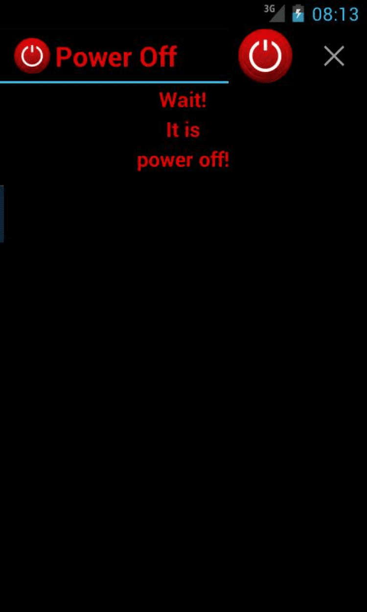 Выключение Небольшое и простое в использовании приложение для мобильных устройств под управлением Android, создающее иконку, предназначенную для быстрого выключения (в одно нажатие) смартфона или планшета. Кнопка будет всегда доступна прямо на рабочем столе. Обратите внимание, что для работы приложения требуется наличие прав суперпользователя.