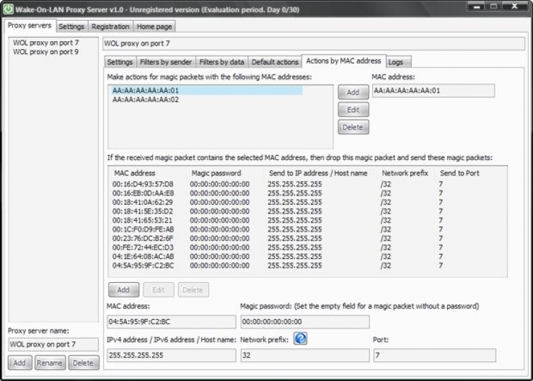Данное приложение разработана для защиты сети от ненужных "волшебных пакетов", передачи трафика между подсетями и снижения нагрузки на сетевую инфраструктуру между подсетями. Wake-On-LAN Proxy Server работает как UDP прокси сервер для этих пакетов, который фильтрует и изменяет входящие пакеты данных, и перенаправляет их по другим сетевым адресам. Есть два режима работы - как системная служба или загрузочный процесс. Поддерживаются IPv4 и IPv6 адреса.