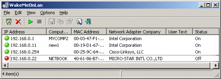 WakeMeOnLan - это небольшая утилита, с помощью которой можно удаленно включать компьютеры в локальной сети. Включение удаленного компьютера осуществляется путем отправки WOL-пакетов (Wake-On-LAN). Она сканирует локальную сеть и сохраняет MAC-адреса компьютеров в ней.
