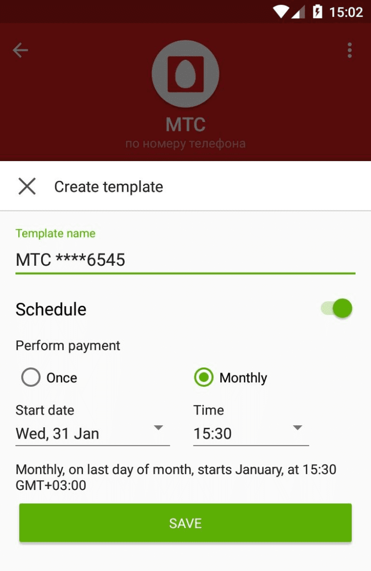 - настройка графика автоматической оплаты услуг;