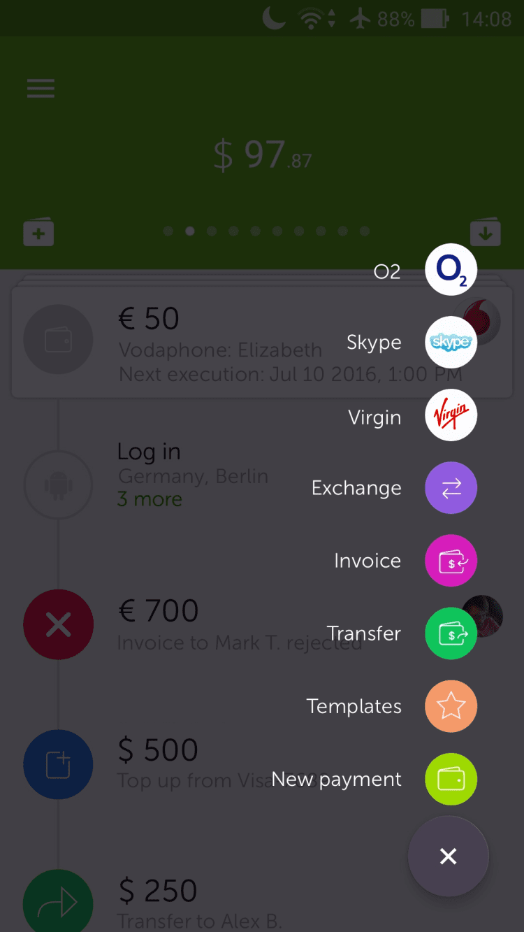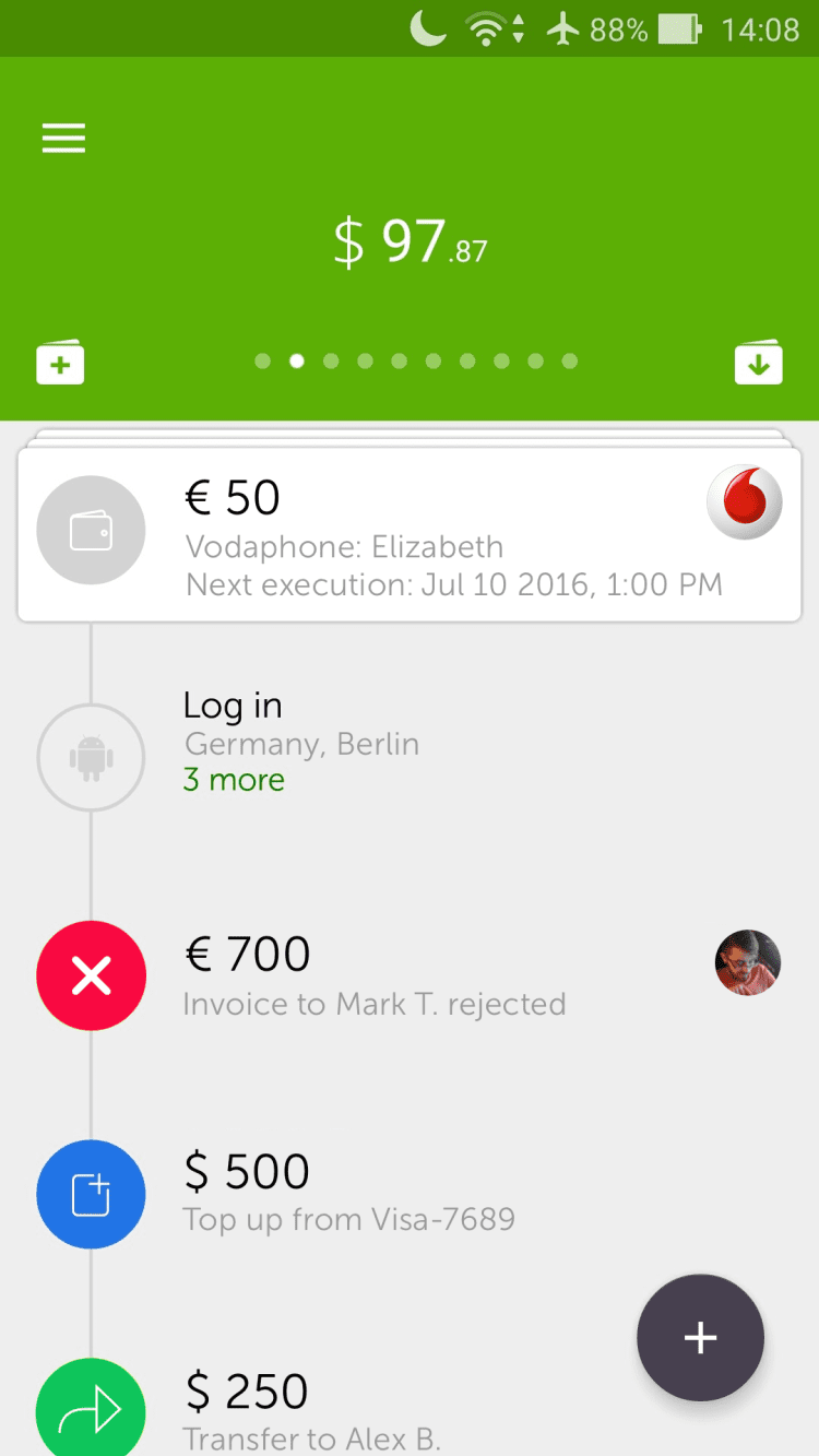 Важно, что программа позволяет открыть мультивалютный кошелек. Другими словами, в Wallet One можно хранить деньги в любой удобной вам валюте и совершать обменные операции, не выходя из дома. Всего в несколько нажатий на экран телефона, вы можете отправить денежный перевод родным и близким, либо оплатить многочисленные услуги: сотовую связь, интернет, онлайн-сервисы и многое другое. А приятным дополнением станет возможность настроить расписание для автоматического совершения платежей.
