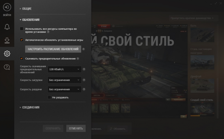 - Возможность ограничить использование ресурсов компьютера во время установки игр.