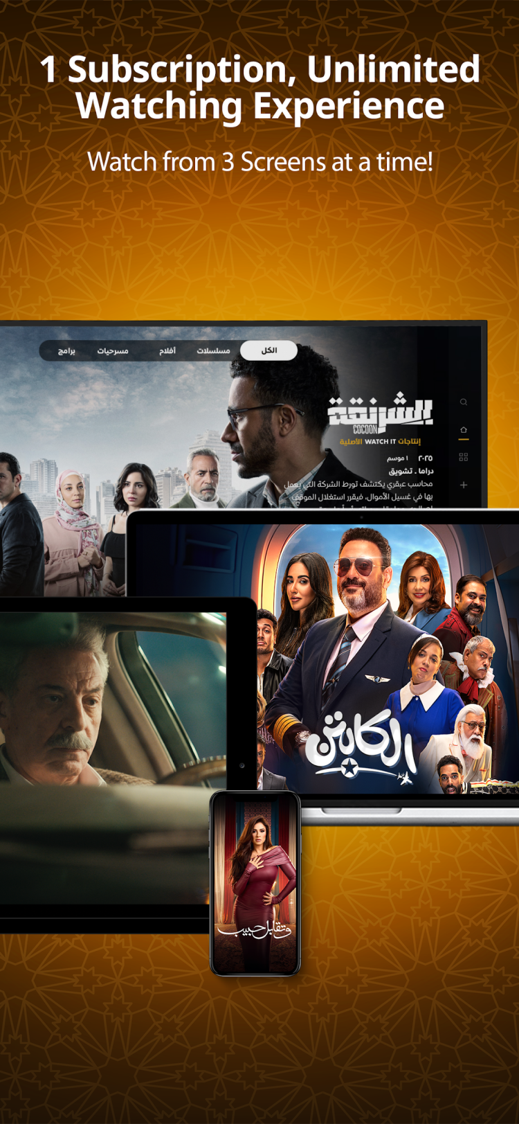 В настоящее время существует множество потоковых платформ, которые фокусируются на определенном типе контента. Одним из самых ярких примеров является WATCH IT. Эта платформа создана для поклонников арабского видеоконтента, предлагая огромный каталог фильмов, сериалов и шоу. В последней версии приложения есть все: от классических фильмов до горячих новинок во всех жанрах. Умная система рекомендаций поможет вам с выбором, предлагая контент, похожий на фильмы, которые вы смотрели ранее. Приложение Watch It предоставляет вам медиаконтент в высоком качестве и позволяет смотреть видео на 3 устройствах одновременно. Но что еще важнее, здесь вы можете создавать персональные учетные записи для членов вашей семьи и настраивать их, что поможет вам вести отдельные списки избранного, просмотренного контента и т. д.