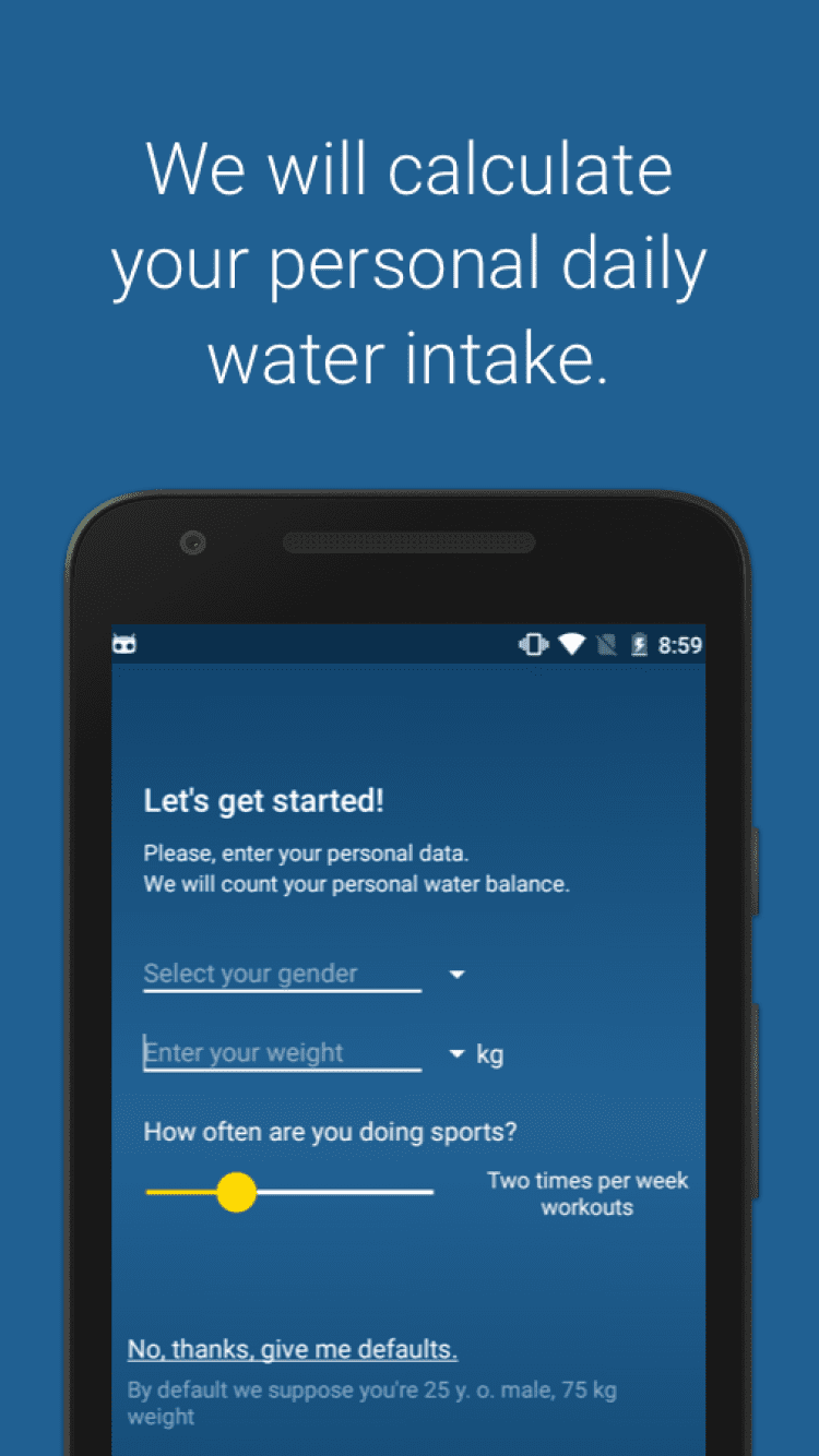 С этим приложение вы будете поддерживать водный баланс своего организма, и сможете выработать полезную привычку пить воду в нужных количествах, что крайне важно для вашего организма.
