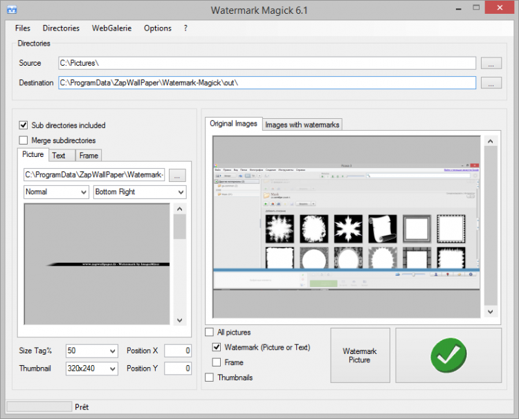 Другой плюс программы Watermark Magick заключается в том, что она позволяет обрабатывать сотни изображений в пакетном режиме, но при этом проста и удобная в использовании. То есть с ее помощью можно наложить один водяной знак сразу на множество изображений всего одним нажатием.