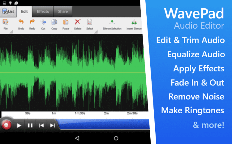 Аудиоредактор WavePad Audio Editor Free 6.52 поддерживается устройствами на платформе Android (смартфоны, планшеты) версии 3.0 и выше. Языки интерфейса: русский, английский.