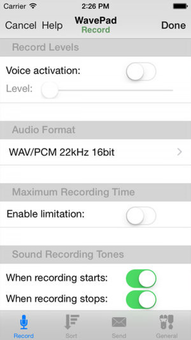 Аудиоредактор работает на iPhone, iPad, iPod с iOS версии 6.0 и выше. Язык интерфейса — английский.
