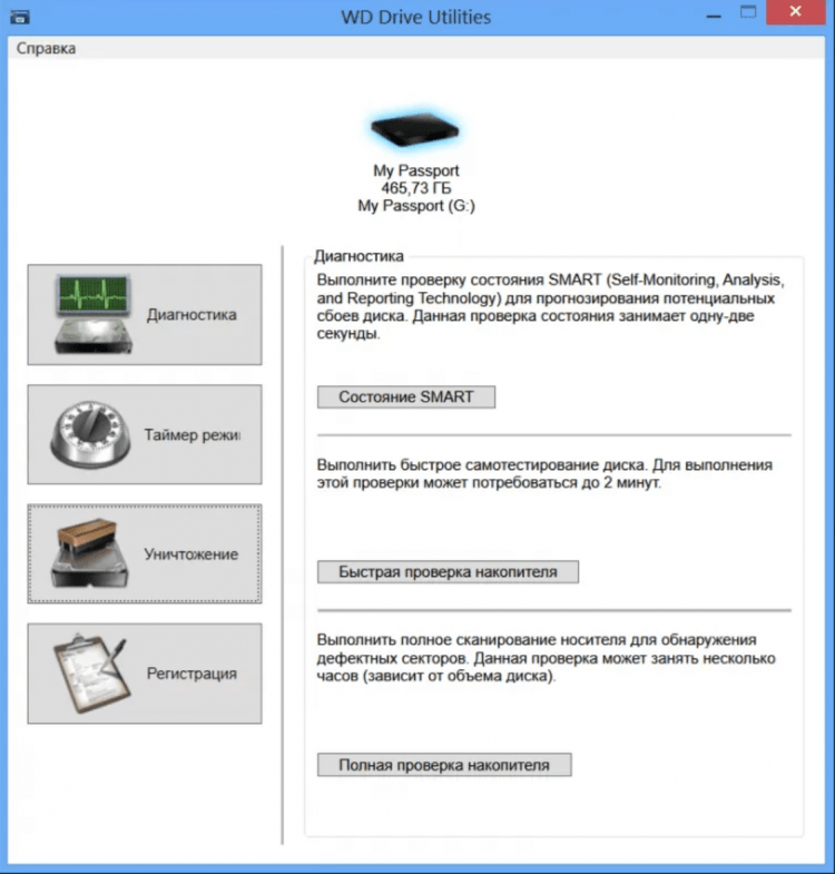 WD Drive Utilities поддерживает жесткие диски следующих моделей My Book, My Book, My Book for Mac, My Book Pro, My Book Duo, WD easystore Desktop, My Passport SSD, My Passport, My Passport Ultra и пр.