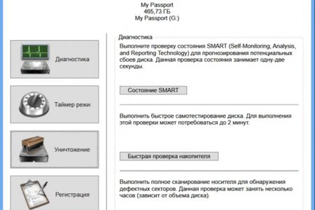 WD Drive Utilities позволяет настраивать, управлять и диагностировать жесткие диски компании Western Digital.