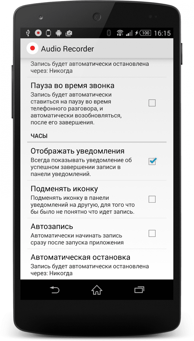 Программа Wear Audio Recorder обладает большим количеством настроек. Изменяйте качество звука, используйте фильтры для подавления эха и шума, настраивайте автоматический запуск приложения при включении устройства и многое другое. Возможность быстрой записи звука с интеллектуальных часов, удобный и понятный интерфейс приложения, а также большое количество дополнительных функций не оставит равнодушным даже самого требовательного пользователя.