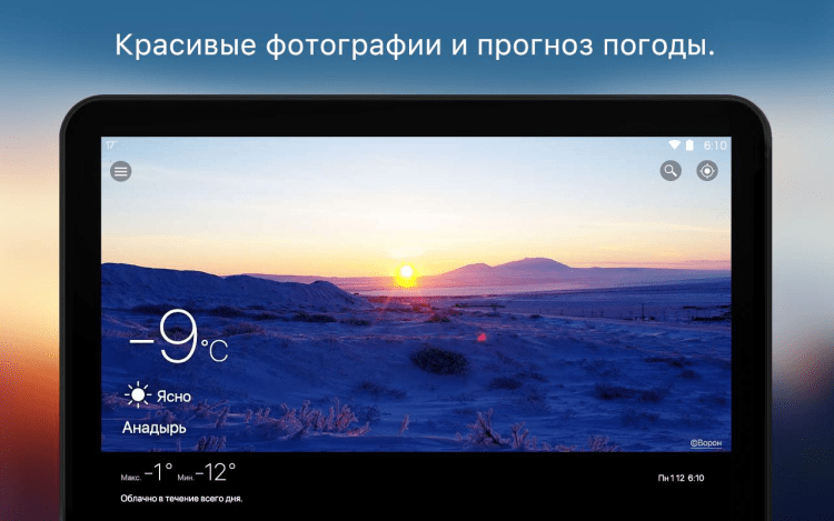 Интересно, что программа использует изображения, подходящие для текущих погодных условий, загруженные реальными пользователями. Вы также можете загрузить свои снимки и даже продавать их через это приложение.
