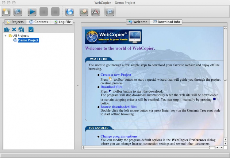 WebCopier Офлайн-браузер, который позволяет скачивать файлы, а также целые веб-сайты или их отдельные части в Интернете для их дальнейшего просмотра в автономном режиме.