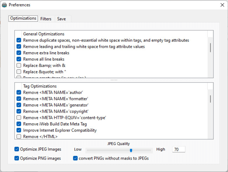 WebCrusher — это утилита, которая поможет оптимизировать веб-сайт и увеличить скорость его загрузки. Такое ускорение достигается путем уменьшения размера файлов и исходного кода сайта. При этом такое сжатие никак не скажется на качестве контента (в частности изображений). WebCrusher предлагает более 40 технологий оптимизации. После оптимизации WebCrusher позабоится о том, чтобы на сервер были загружены только оптимизированные файлы. Стоит отметить, что некоторые файлы можно исключить из процесса оптимизации благодаря встроенному фильтру.
