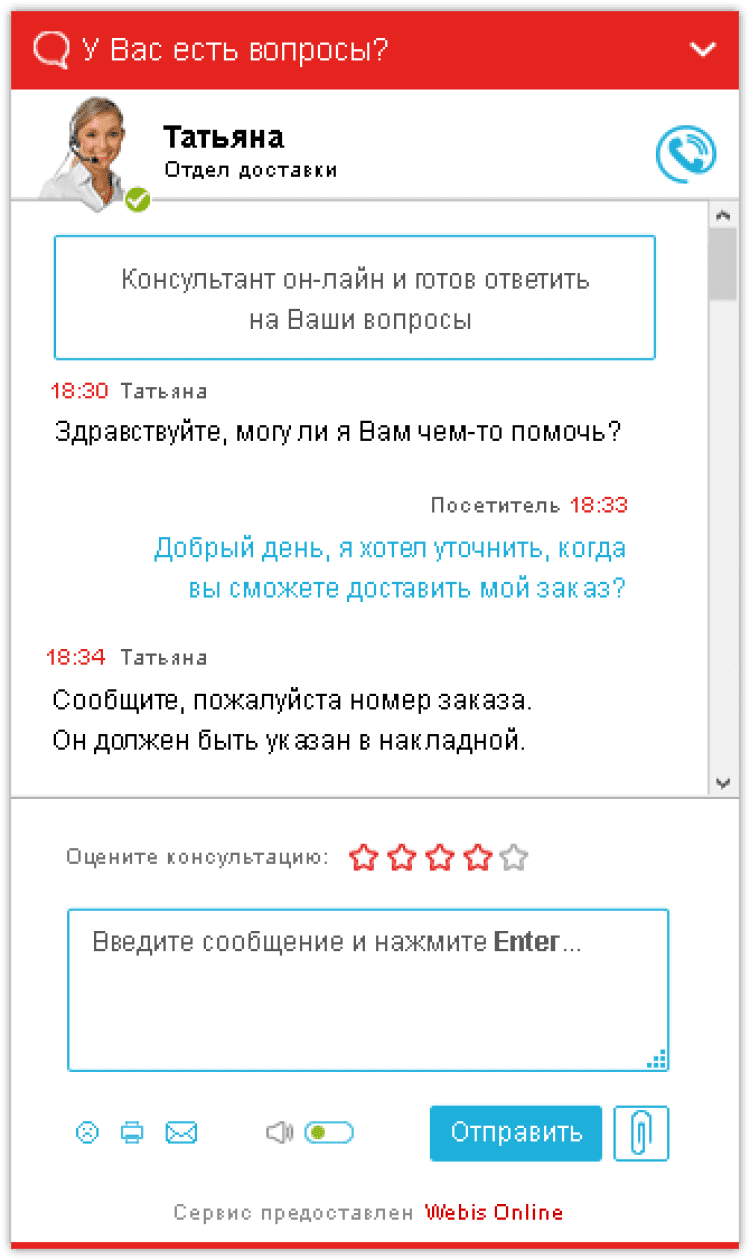 WebisCall - сервис онлайн-консультаций от компании Webis Group. Он предназначен для мгновенной связи между посетителями сайта и менеджером в компании.