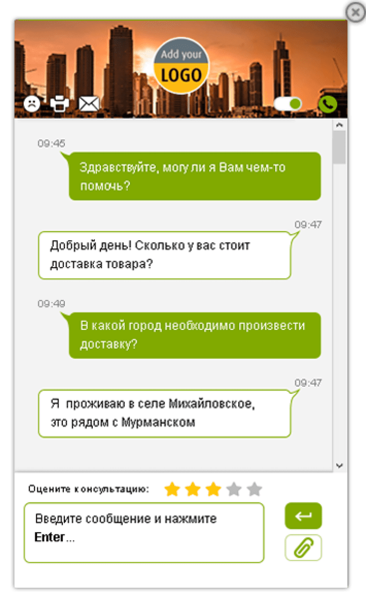 Менеджеры всегда видят полную историю сообщений по каждому посетителю. Руководитель может оценивать эффективность их работы (количество проведённых консультаций и звонков, количество запросов без ответа, оценки менеджеров посетителями, история общения) и своевременно реагировать для повышения качества работы.