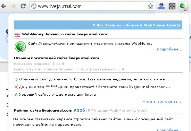 - Постоянный мониторинг открываемых в браузере интернет-сайтов на их принадлежность сообществу интернет-ресурсов WebMoney - всего сайтов: 67888.