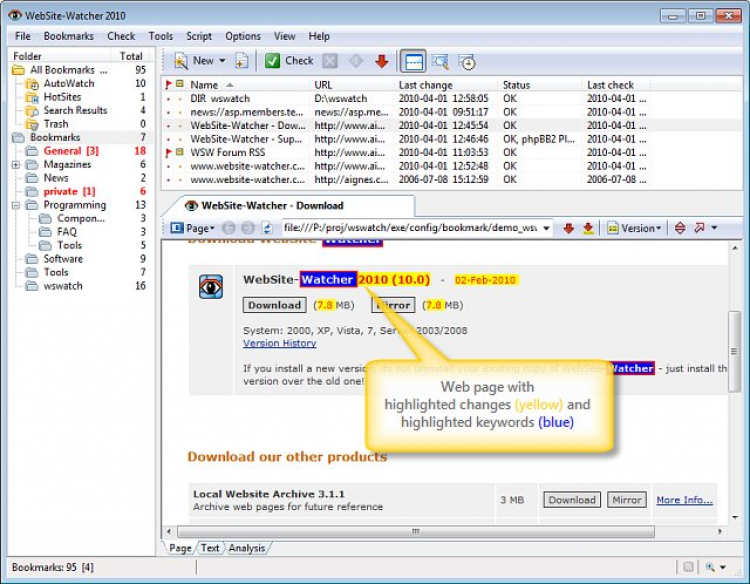 WebSite-Watcher - это программа, которая отслеживающая изменения на заданных пользователем веб-страницах.